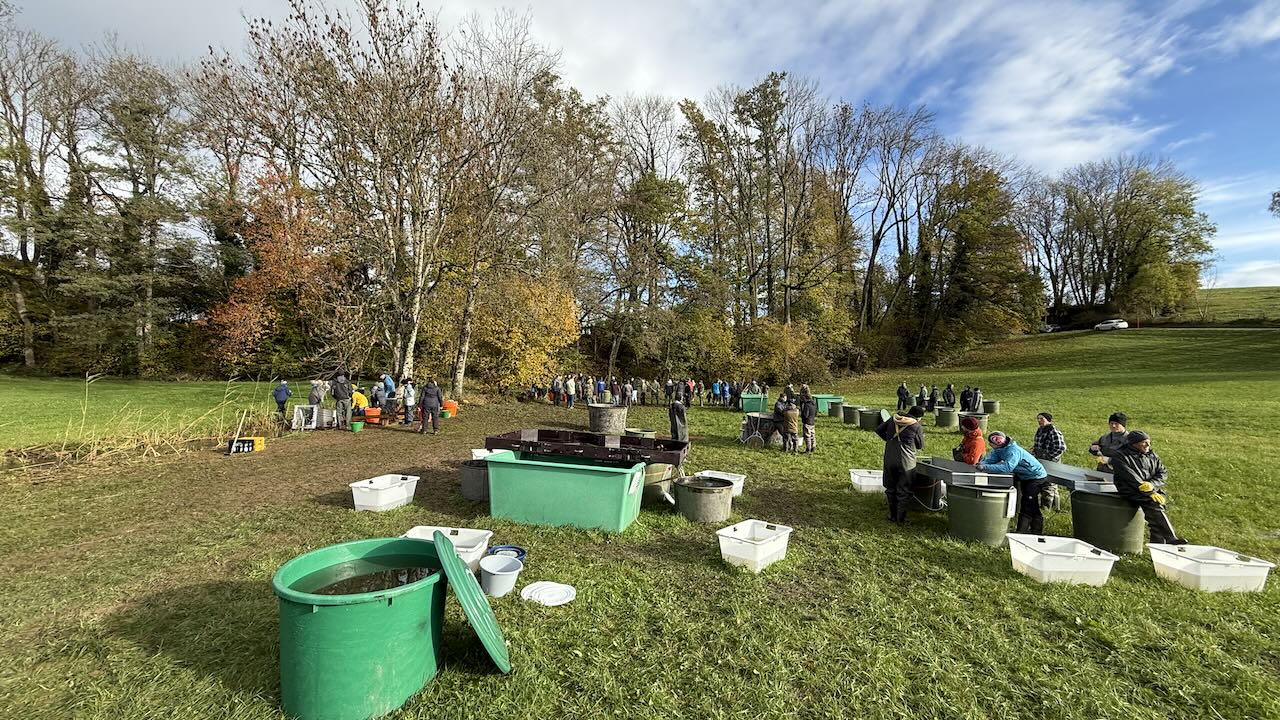 Am 24. Oktober, dem Vortag der Abfischung, wurden die logistischen Strukturen aufgebaut: Arbeitsbereiche, Transportwege und Stationen. So konnte das eigentliche Abfischen am nächsten Morgen pünktlich und ohne Verzögerung beginnen.