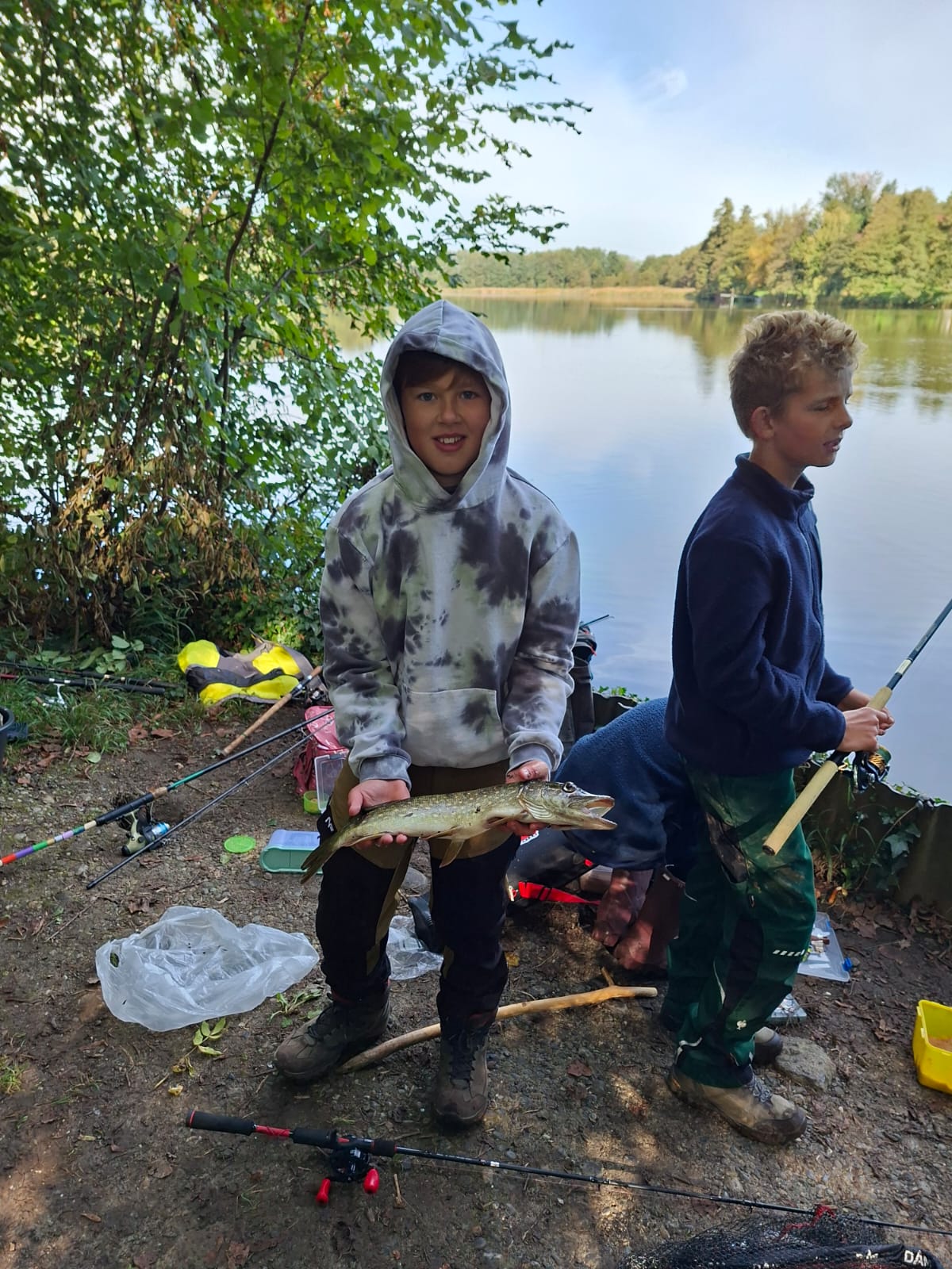 Auch bei den anderen kam Bewegung ins Wasser: Insgesamt konnten mehrere Hechte gefangen werden – darunter auch ein Untermaßiger, der selbstverständlich wieder schonend zurückgesetzt wurde. Besonders erfreulich war, dass gleich zwei unserer Jungangler mit Spinnruten erfolgreich waren und jeweils einen Hecht fingen.